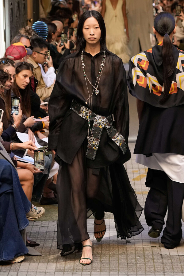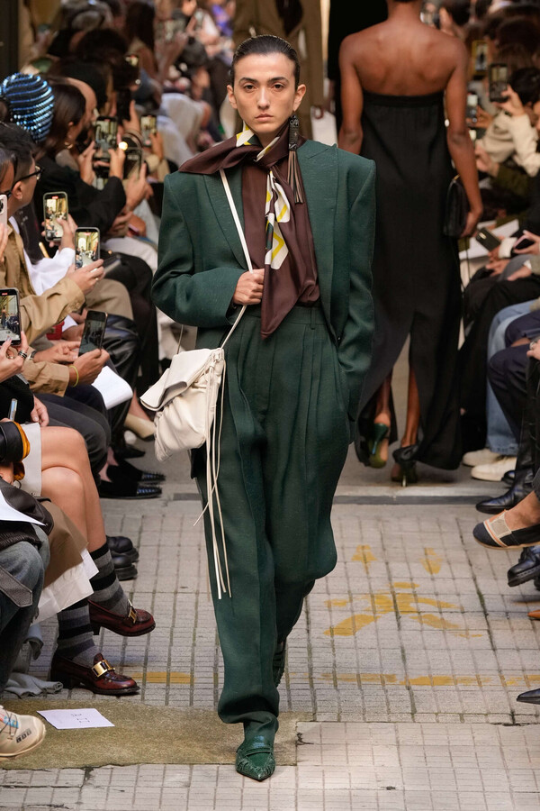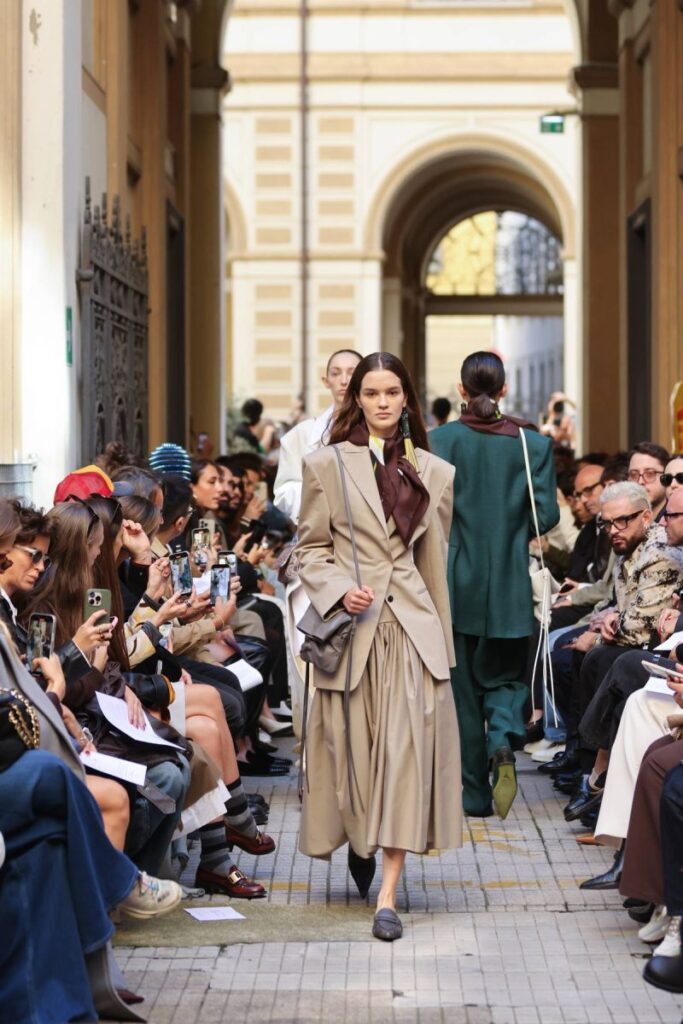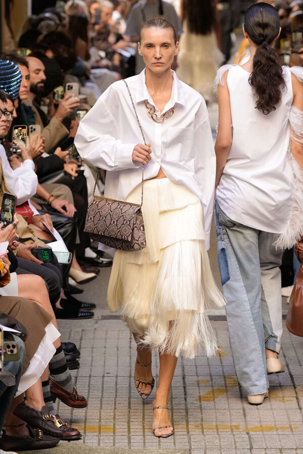 In this ongoing dialogue between past and present, Daniele Calcaterra expresses gratitude to those who support his multidisciplinary vision, a signature rooted deeply in his creative DNA. With KIWI Vapor, he has designed two genderless accessories — a meeting point between technology and fashion, where function meets aesthetic. And with Cuoio di Toscana, he celebrates the prestigious CDT Prize, honoring it through the creation of all the shoes seen on the runway, anchoring the collection in a tradition of timeless artisanal mastery.