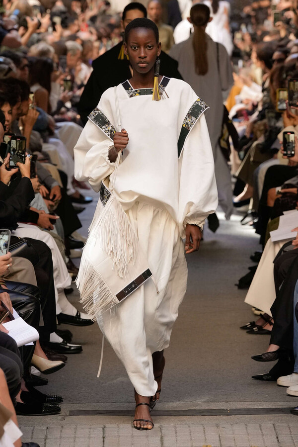A path of personal style that intertwines precise masculine tailoring with delicate feminine sensuality, drawing silhouettes that transcend eras, cultures, and memory. Like vintage photographs on scented glossy paper, treasured behind closed eyes, an androgynous muse takes shape — adorned, hybrid, fragile, and strong all at once. Berber-inspired adornments embellish tightly cinched jackets, fastened to the breath’s edge, in contrast with blazers evoking the carefree elegance of Ben Volpeliere-Pierrot. Tailored spencers are reinterpreted and paired with flowing dresses or voluminous trousers, gathered at the ankle as if to hold back the stride of a new era. Thus, a new silhouette is born — one that no longer belongs to a defined gender, but rather to pure individuality. No longer masculine. No longer feminine. Just unique. Because not everything is made to impress. Some things are simply meant to exist — in silence.