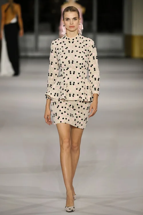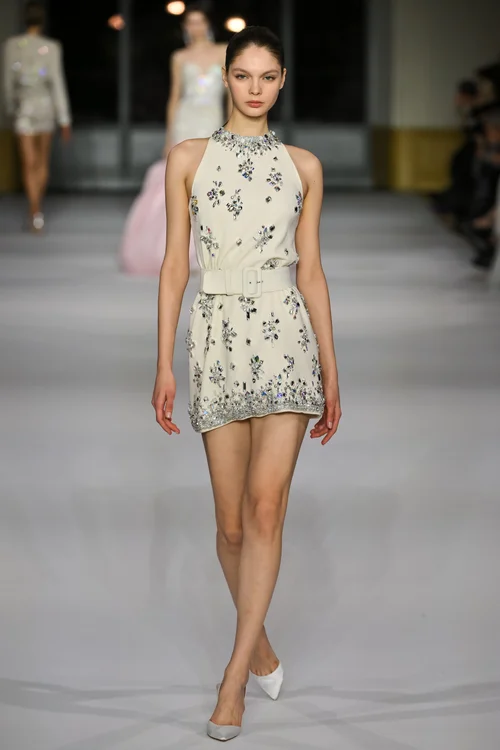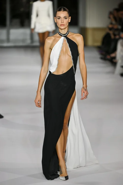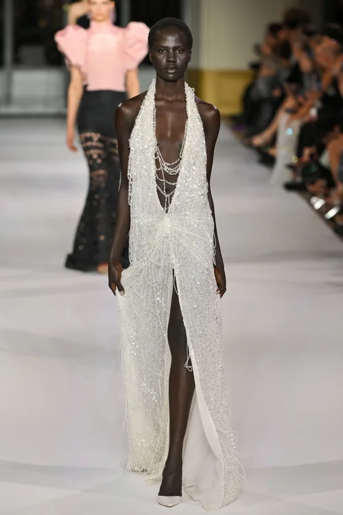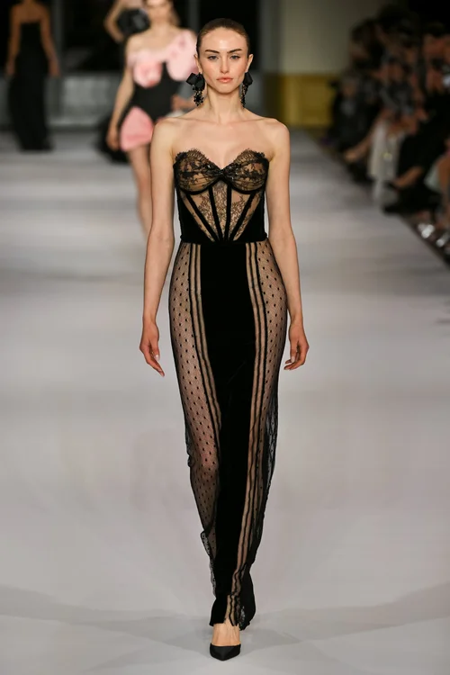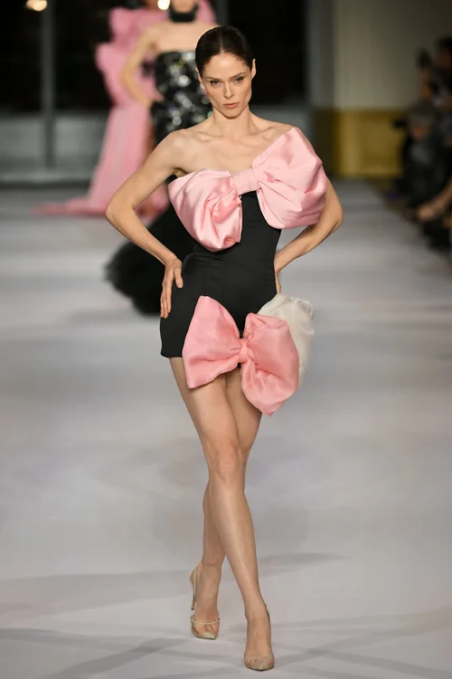 Welcome to the Celia Kritharioti Couture SS25 Collection. Irina Shayk, Alessandra Ambrosio, Stella Maxwell and Coco Rocha were the top models who captivated the runway at Petit Palais in Paris. Rooted in the striking palette of pink, black, and white, this collection—carrying the legacy of being the oldest couture house in Greece, founded in 1906—is a masterful interplay of contrasts and creativity. From playful color blocking to show-stopping creations, Celia Kritharioti presents a bold vision of couture. Mini dresses
