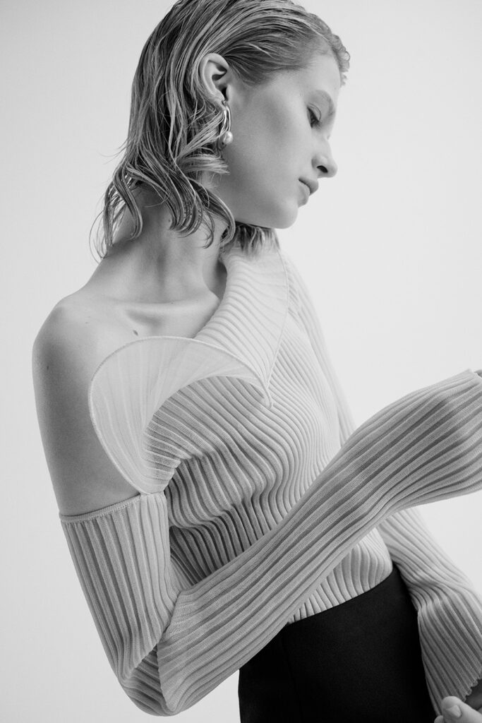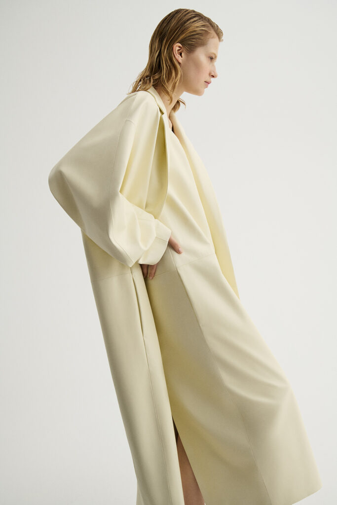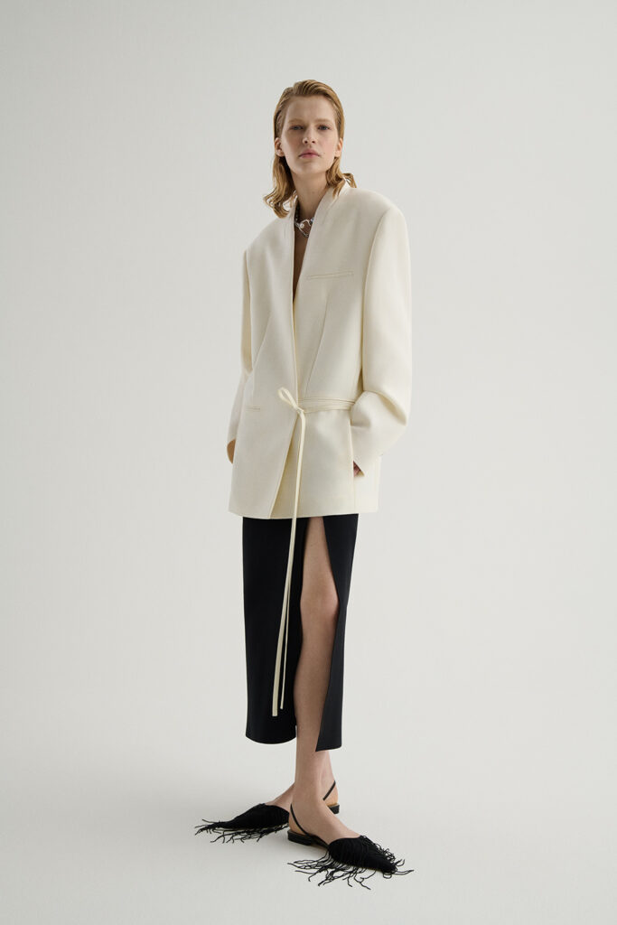 The collection features no bags, but the iconic Andi coat takes center stage in the models’ hands – a symbol of GIADA style. This season, its tailoring is defined by an even higher front slit. A tempered rigor emerges through sheer layers, an apparent minimalism, and pointed knit ankle boots or artfully fringed slides. A further step toward new horizons of beauty.