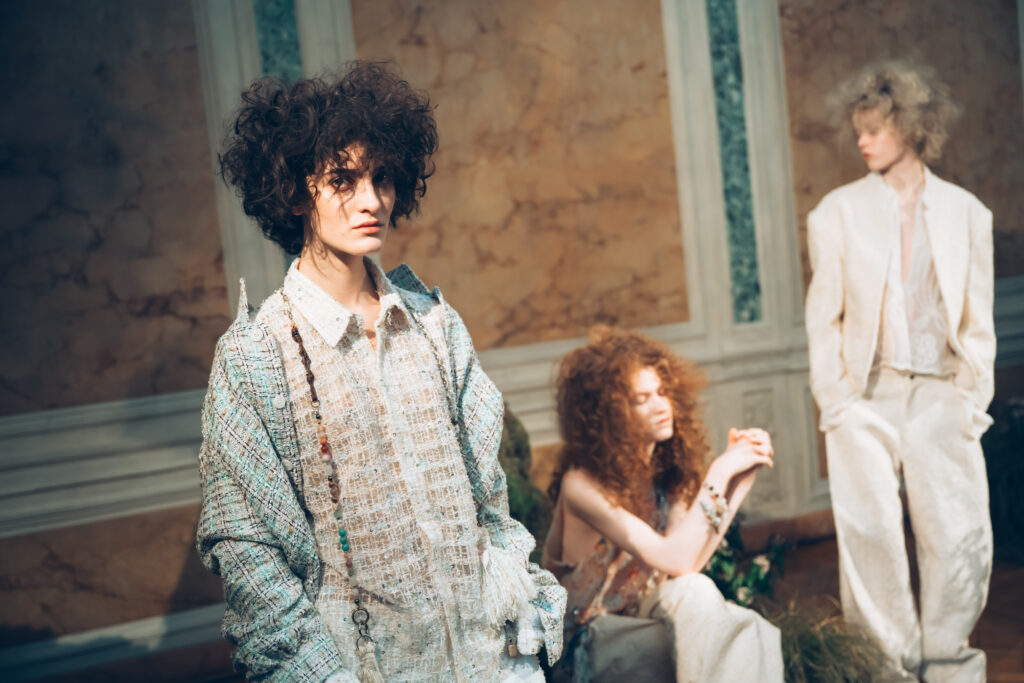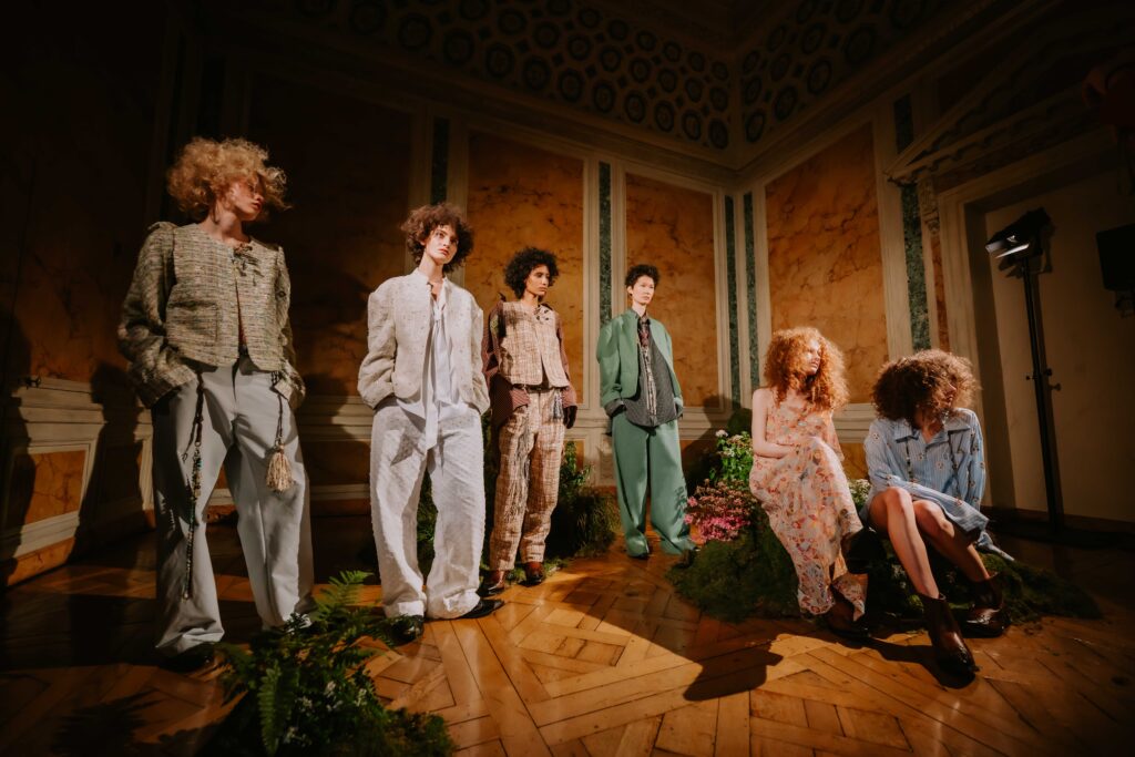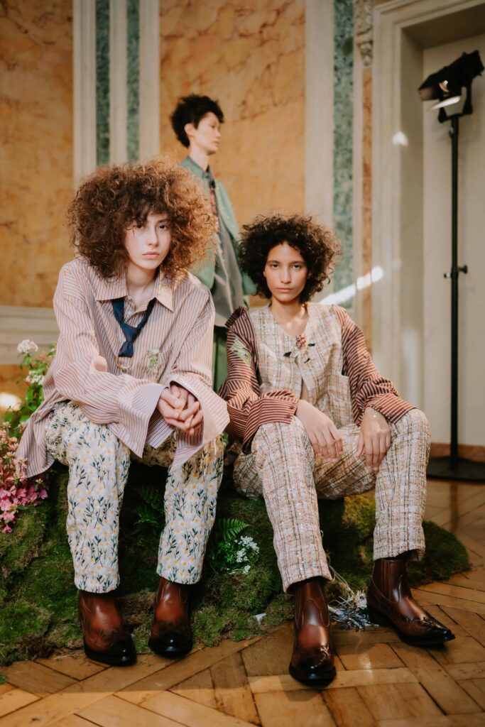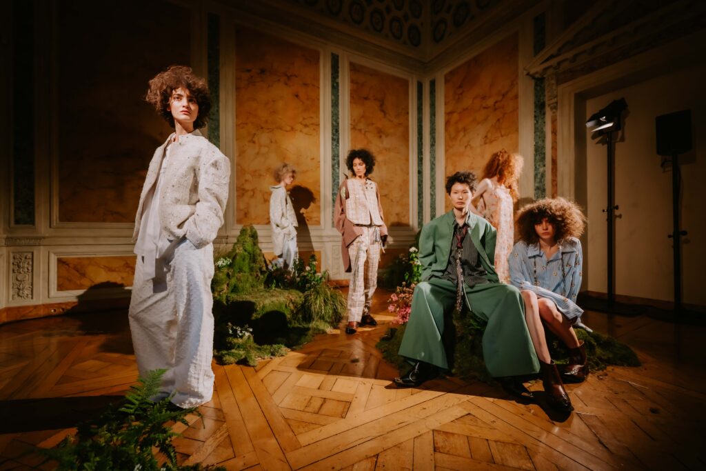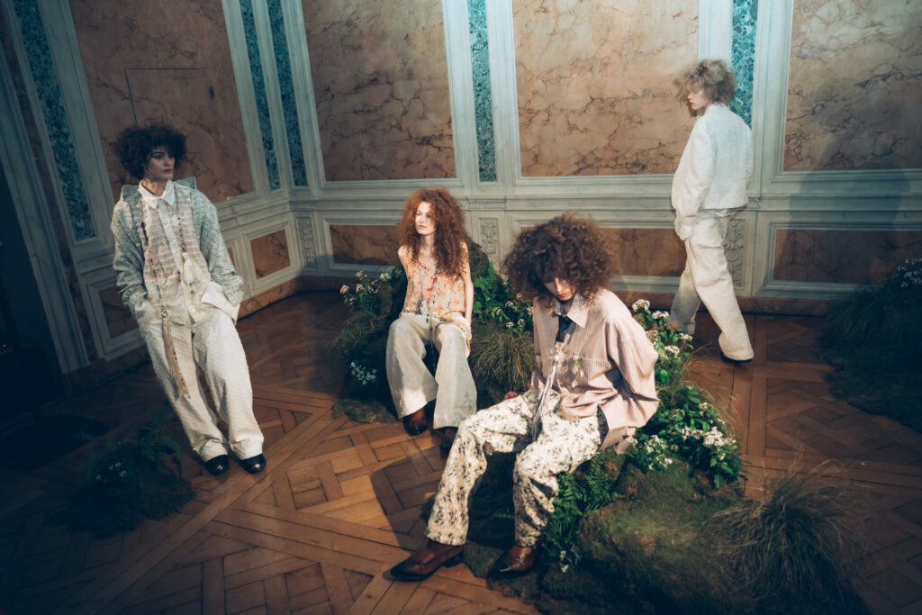 During the Paris fashion week, DEMO presented AW26 collection as an immersive showcase. They created an indoor ‘meadow’ within an urban space, dotted with small hills and floral accents. Models moved freely through the landscape, and the audience was immersed within it. The boundaries between models and audience dissolved, embodying the theme of freedom. Through this constructed natural setting, DEMO gave form to the hippies of 2026—the DEMO version of freedom. The DEMO AW26 collection is inspired by the 1969 film ‘Sweet Charity’.