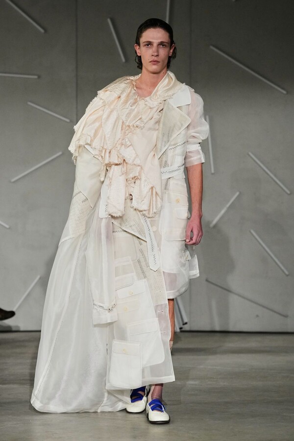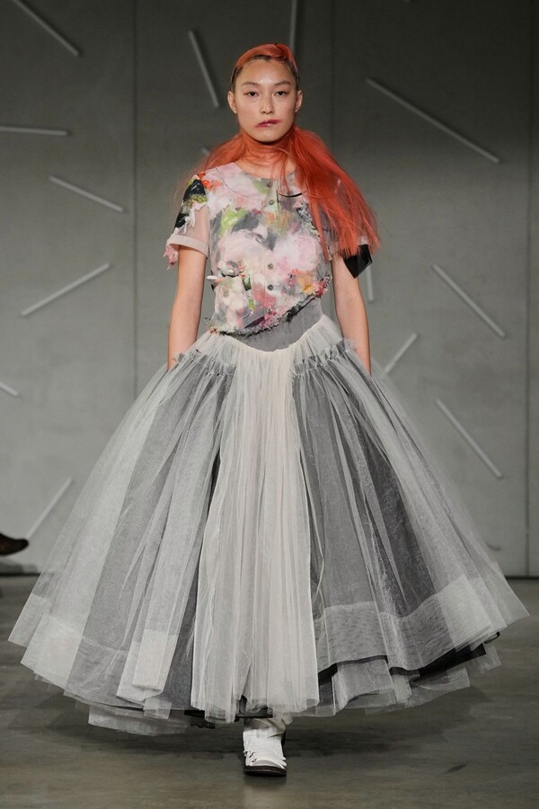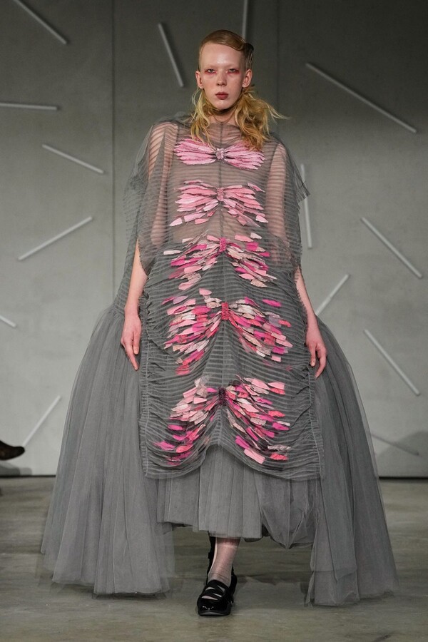 Grounding these ethereal, layered “living canvases” was the brand’s ongoing collaboration with Adidas. The CLOT Taekwondo sneakers appearing in shades of black, pink, and off-white—provided a necessary functional balance, ensuring that Caroline Hú’s theatrical energy remained tethered to reality. Ultimately, the collection stood as an equilibrium of poetry and experimentation, proving that Caroline Hú’s pursuit of breaking “invisible rules” is exactly what makes her one of the most compelling designers on the Paris Fashion Week calendar today.