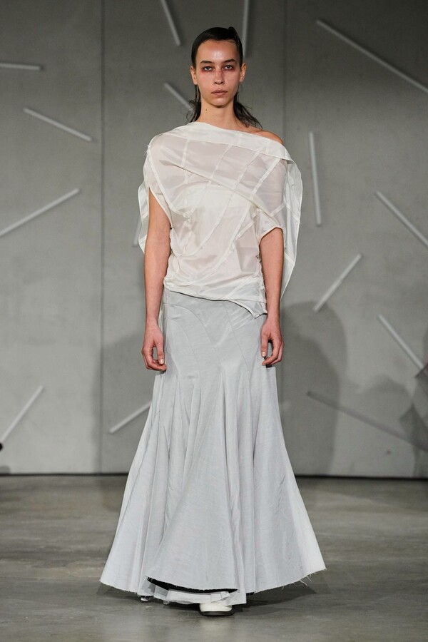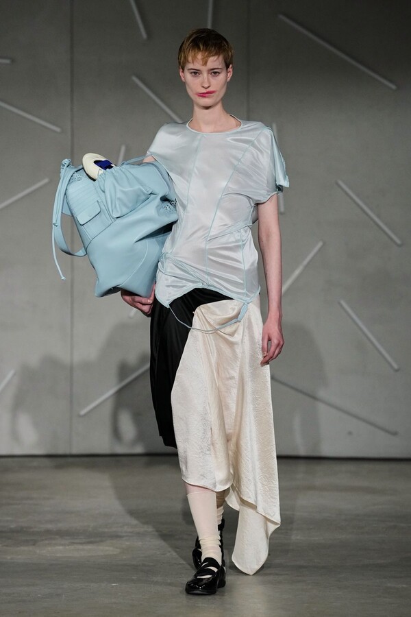 Caroline Hú’s Spring/Summer 2026 collection, aptly titled “Reverie,” served as a profound invitation into a world defined by dreamlike distortions and the beauty of subtle disruptions. Staged with a practice grounded in a rare marriage of fragility and meticulous craft, Caroline Hú used the season to experiment with human perception, testing the boundaries of how far familiar silhouettes could be stretched while retaining their essential soul. Throughout the presentation, her manipulations of the everyday were delivered with a blend of calculated surprise and quiet humor.