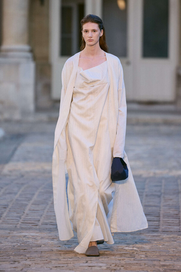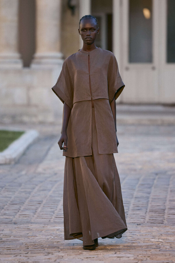 The collection revealed at the National Archive museum in Paris. “When the weather grows warm, I often walk there. Through the gate, straight to the end, a turn to the right, and on the right-hand side, a hidden garden. I sit on a bench, and the world falls silent, as if another time had opened. I call it “zoning”—a way of stepping out of the present into another mood. That garden has always been my zoning ground.” Out of this shift, the rhythm of the season took shape.