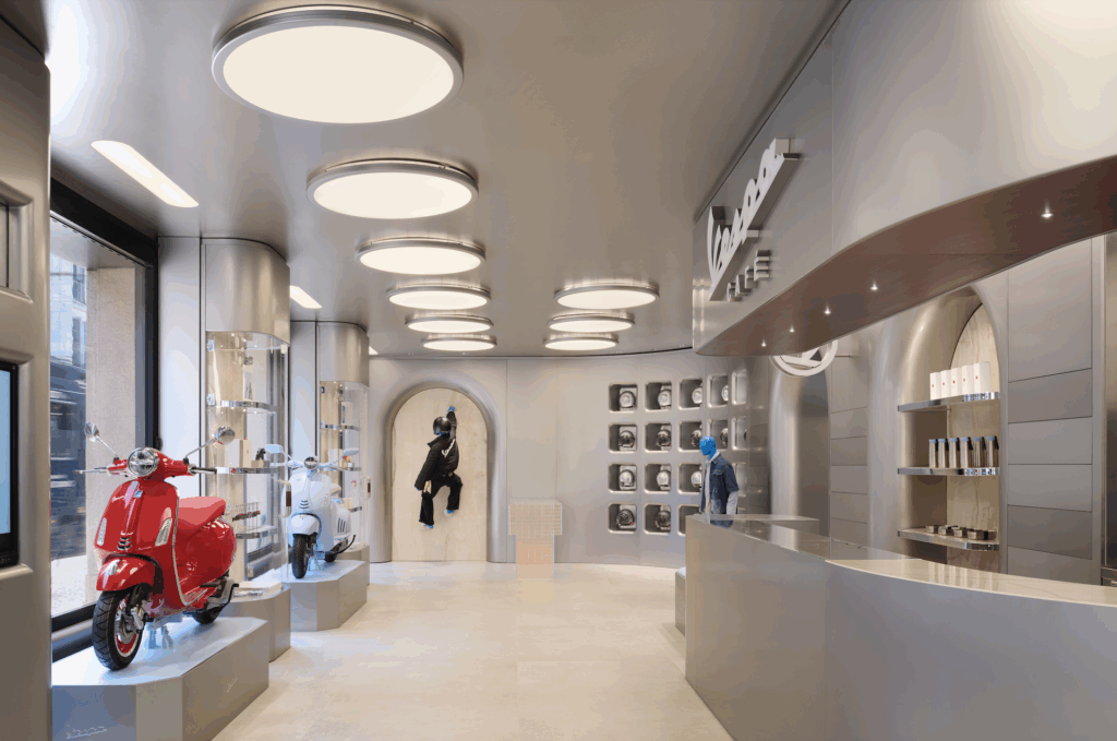 Since 1946, Vespa has been more than just a vehicle: it is an icon that transcends generations. Today, that same energy is renewed with VESPA THE EMPTY SPACE. A seemingly empty space, built from boundless content contained within the same perimeter. In the beating heart of Milan, Vespa lights up number Via Broletto 13 with the inauguration of VESPA THE EMPTY SPACE, an immersive and visionary concept store that goes beyond the logic of a simple retail point to become a cultural hub, an aesthetic experience, and a social space.