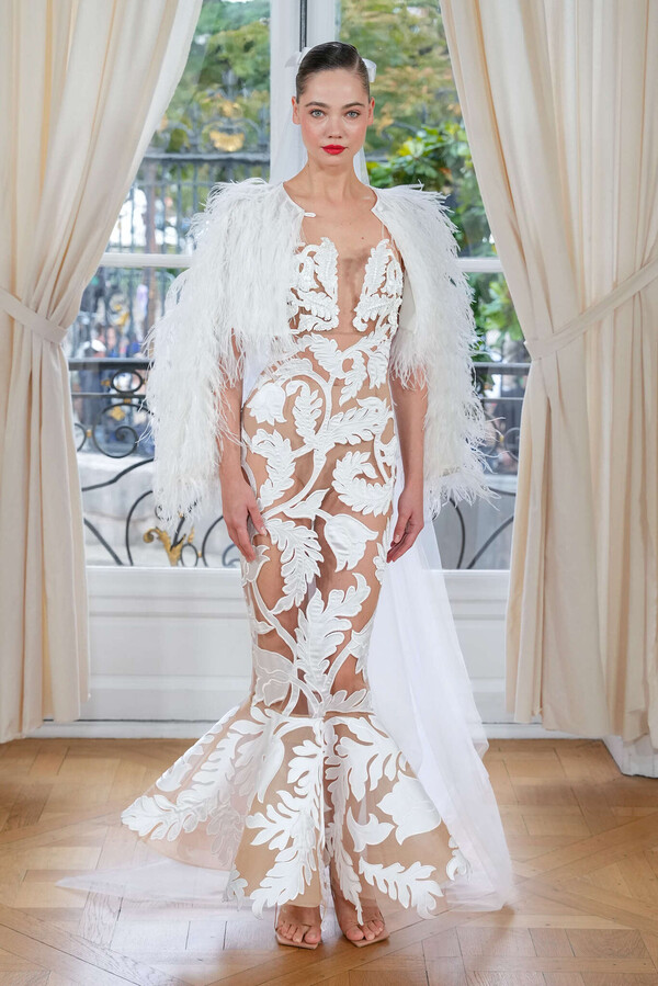 What really makes the pieces stand out is the incredible craftsmanship. Techniques passed down over decades—like Richelieu cutwork, gold detailing, and something brand new called “architectural satin stitch”—show up throughout the looks. There’s a strong mix of tradition and innovation here, and it works beautifully. Yulia and her team clearly believe that fashion is more than just fabric—it’s a way to share love, memory, and meaning.
